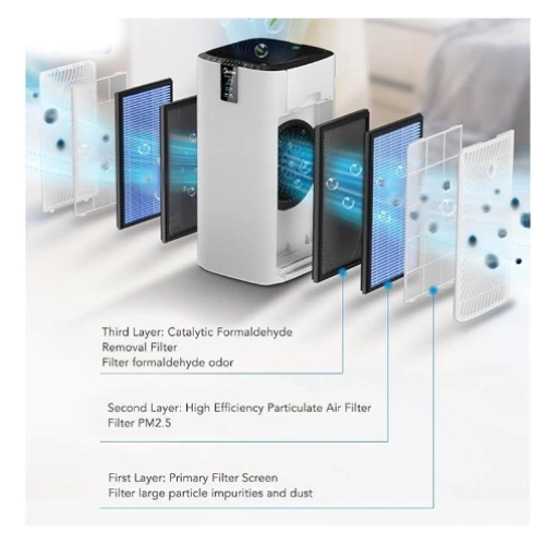گرفتن ذرات بزرگتر مثل گرد و غبار، موی حیوانات، پرز، ذرات درشت – بخشی از آلودگی قابل مشاهده، جذب ذرات ریز معلق در هوا (مثل گرد و غبار بسیار ریز- PM2/5- دود گرده – آلرژن ها) مهمترین لایه برای پاکیزگی واقعی هوا / پیش فیلتر قابل شستشو